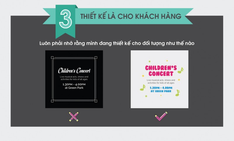 - Hãy nhớ rằng mặc dù thiết kế của bạn có thể trông đẹp nhưng lại không mang đúng tính chất chương trình mà khách hàng bạn yêu cầu. Khách hàng không cần thiết kế đẹp, họ chỉ cần thiết kế phù hợp.