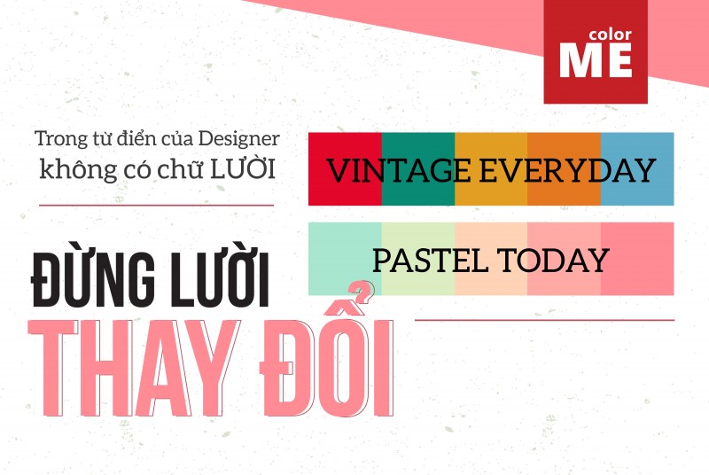 - Thiết kế là cả một quá trình thử và trải nghiệm. Có nhiều người mãi theo một phong cách, một concept thiết kế mà không chịu thay đổi, không chịu thử những cái mới. Đừng dùng mãi một font cho một kiểu ấn phẩm, dùng mãi một dải màu, theo mãi một phòng cách. “Lười” là từ không có trong từ điển của Designer. Phải thay đổi, phải trải nghiệm khám phá những cái mới thì bạn mới có thể nâng cao kỹ năng của mình, biết mình giỏi cái gì, và rèn được khả năng linh hoạt trong thiết kế.