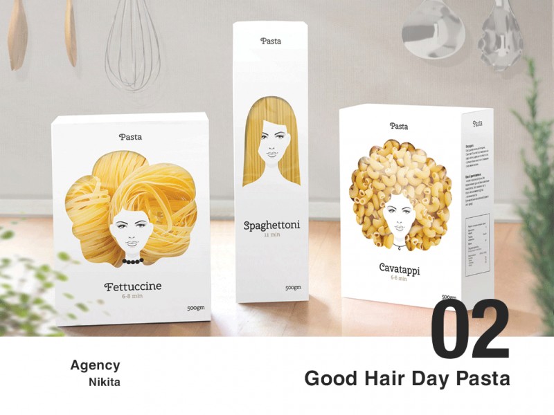 Một bao bì pasta lấy cảm hứng từ chính cấu tạo của sợi mỳ gợi nhắc đến các mái tóc khác nhau của các cô gái là một sản phẩm đầy thú vị của Nikita Konkin. Không mấy ngạc nhiên khi ý tưởng này giành giải bạc trong hạng mục giải “Concept 2016” của Pentawards.