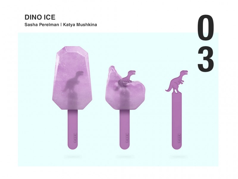 Việc ăn một que kem không còn chỉ dùng lại ở việc thưởng thức những cây kem mát lạnh nữa mà phần bất ngờ còn nằm sau chính lớp kem. Lấy cảm hứng từ loài khủng long Kỷ băng hà, dự án thiết kế Dino ice mang đến cho người xem những cung bậc cảm xúc vui tươi. Những que kem không còn nhàm chán mà còn mang hình dáng và tên của các loài khủng long nữa.