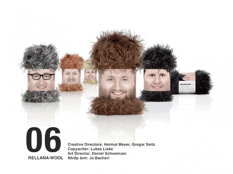 Một mẫu bao bì nổi tiếng và tạo nhiều cảm hứng của Ogilvy & Mather Đức, sự độc đáo đến từ cách xử lý đầy tinh quái khi biến những sợi len thành chính sợi tóc và râu của các khuôn mặt mẫu nam.
