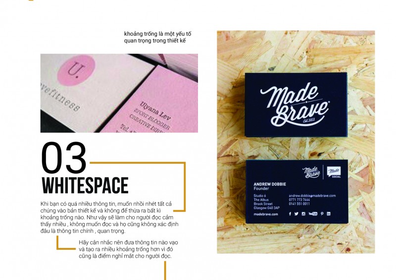 Hãy cân nhắc nên đưa thông tin nào vạo và tạo ra nhiều khoảng trống hơn vì đó cũng là điểm nghỉ mắt cho người đọc.