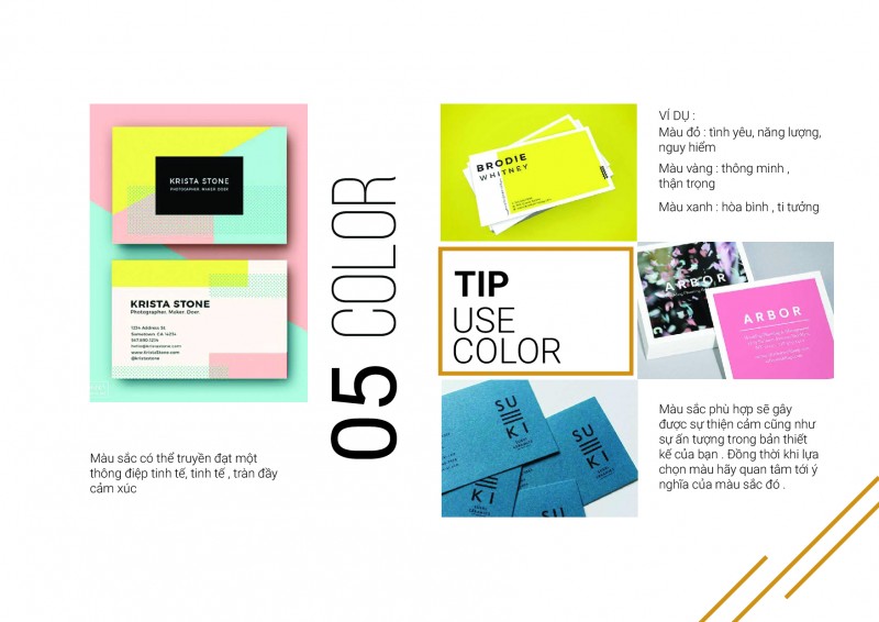 Màu sắc phù hợp sẽ gây được sự thiện cảm cũng như sự ấn tượng trong bản thiết kế của bạn . Đồng thời khi lựa chọn màu hãy quan tâm tới ý nghĩa của màu sắc đó .