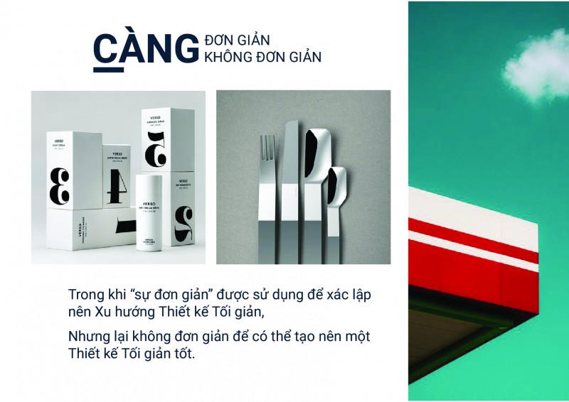 Less is more: càng tối giản là càng thể hiện nhiều. Loại bỏ tất cả chi tiết không cần thiết.