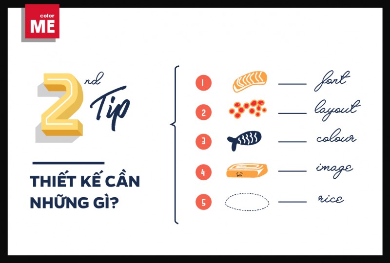 Trong 1 bản tke cần có rất nhiều yếu tố như: Bố cục, Chữ (typo), Màu sắc, Hình ảnh,..