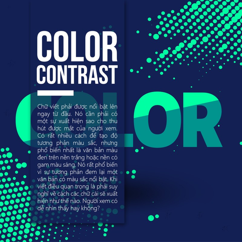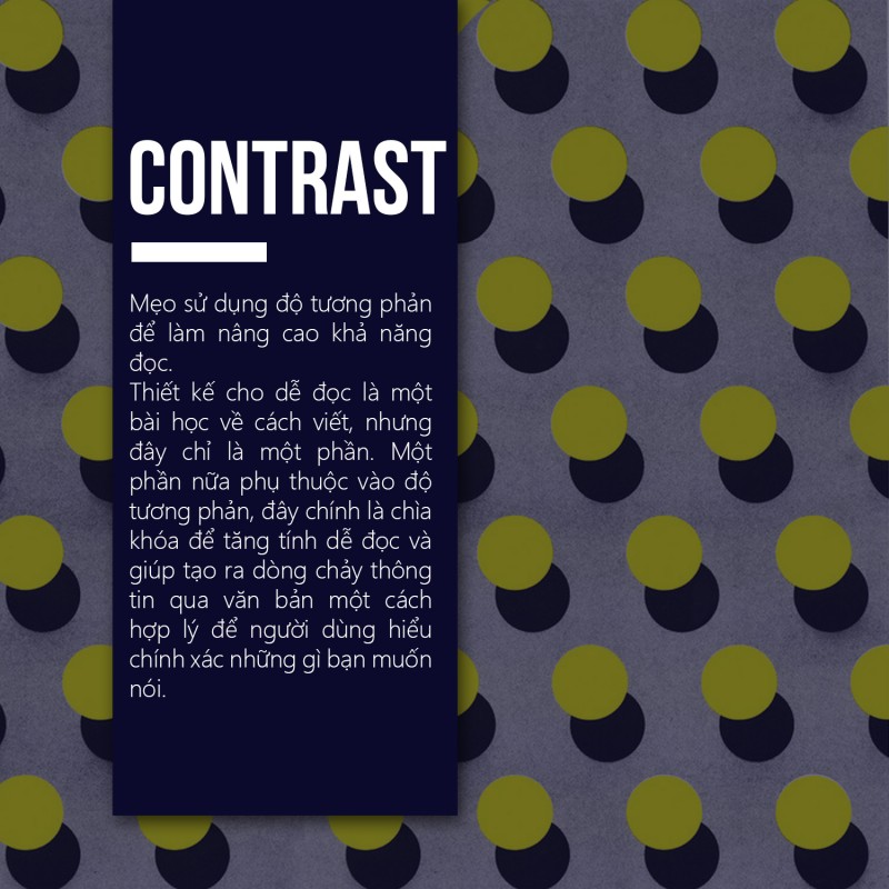 Thiết kế cho dễ đọc là một bài học về cách viết, nhưng đây chỉ là một phần. Một phần nữa phụ thuộc vào độ tương phản, đây chính là chìa khóa để tăng tính dễ đọc và giúp tạo ra dòng chảy thông tin qua văn bản một cách hợp lý để người dùng hiểu chính xác những gì bạn muốn nói.