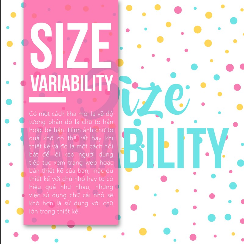 Có một cách khá mới lạ về độ tương phản đó là chữ to hẳn hoặc bé hẳn. Hình ảnh chữ to quá khổ có thể rất hay khi thiết kế và đó là một cách nổi bật để lôi kéo người dùng tiếp tục xem trang web hoặc bản thiết kế của bạn, mặc dù thiết kế với chữ nhỏ hay to có hiệu quả như nhau, nhưng việc sử dụng chữ cái nhỏ sẽ khó hơn là sử dụng với chữ lớn trong thiết kế.