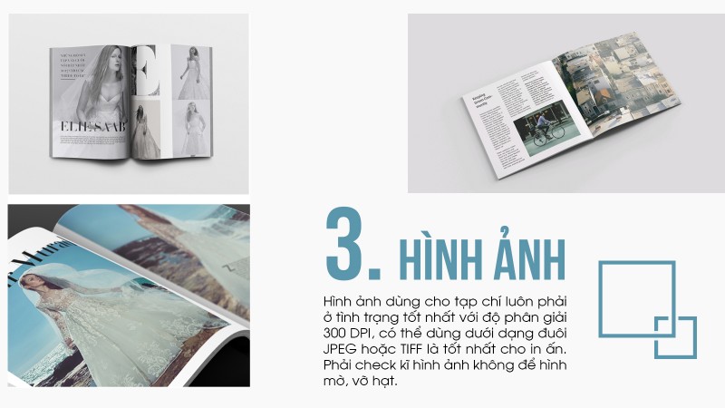 Tạp chí có xu hướng sử dụng ảnh kích thước lớn nhiều hơn. Trên thực tế, bạn có thể nhìn thấy nhiều hình ảnh lớn bao quát cả một trang,thậm chí là lớn tới mức dàn trải sang cả trang bên sau. Cách làm như này tạo ra ấn tượng mạnh và thu hút sự quan tâm của người xem. Mắt người đọc chỉ có thể cảm nhận được khoảng tối đa 400 từ sau đó cần nghỉ ngơi,dựa vào điểm này designer cần sắp xếp chữ và hình ảnh cho hợp lý.